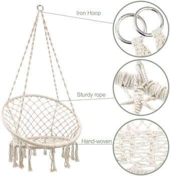야외 공원 사용을위한 교수형 하드웨어 키트가있는 수제 마크라메 스윙 의자 면 로프 해먹